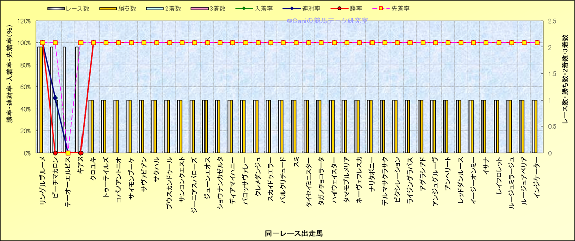 ライバル(相性)解析 同一レースに下記馬が出走した場合の成績とその馬に先着する先着率 |