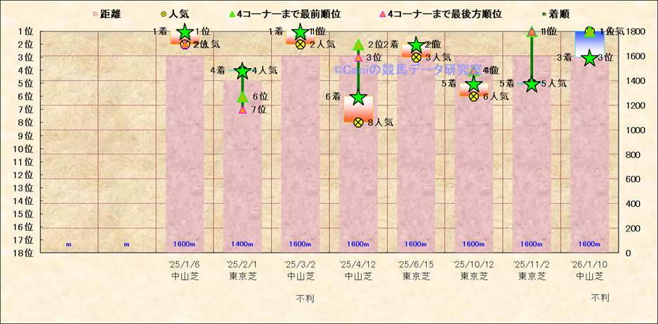 近10走 人気−着順-位置取りの推移 |