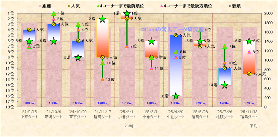 近10走 人気−着順-位置取りの推移 |