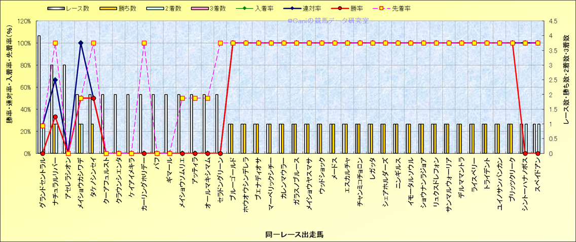 ライバル(相性)解析 同一レースに下記馬が出走した場合の成績とその馬に先着する先着率 |
