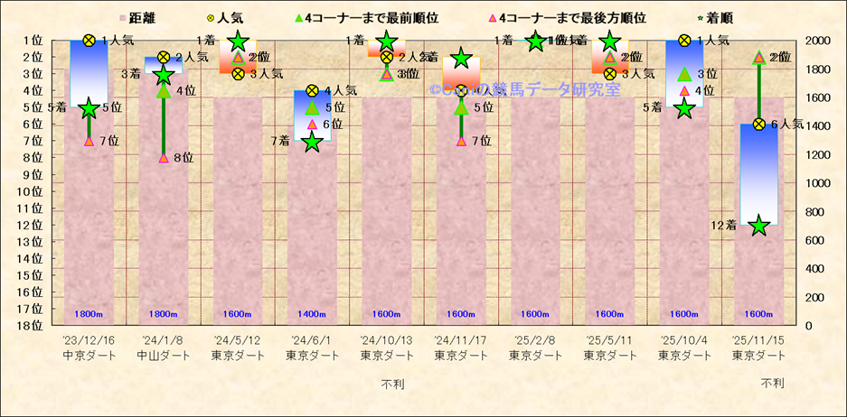 近10走 人気−着順-位置取りの推移 |