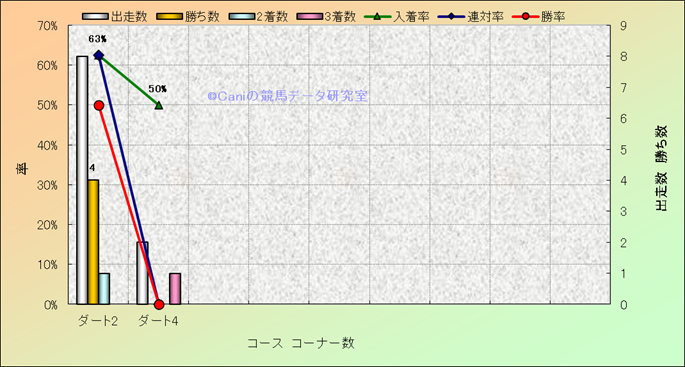 コース、コーナー数別成績(平地) |