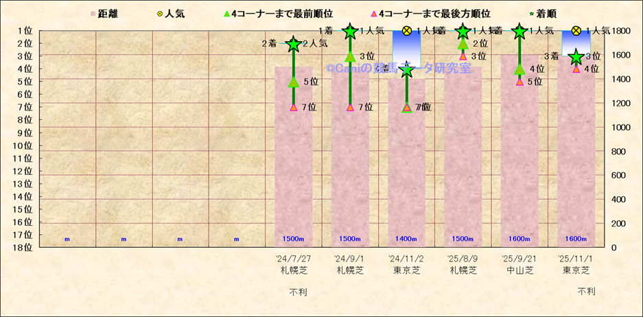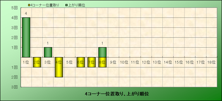 脚質解析 近20レースの4コーナーでの位置取りと上がり順位(頭数補正後) |