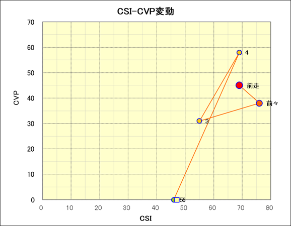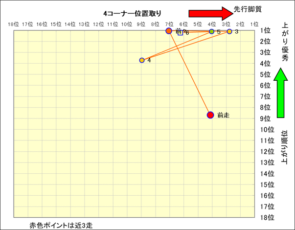 近走における4コーナーでの位置取りと上がり順位(頭数補正後) |
