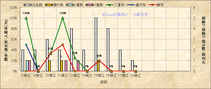 コース、最後の直線の高低差別成績(平地) |