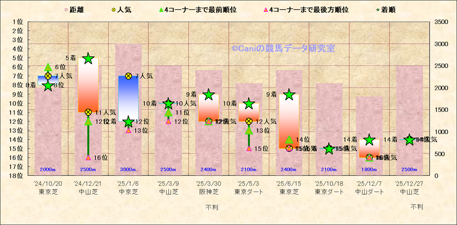 近10走 人気−着順-位置取りの推移 |