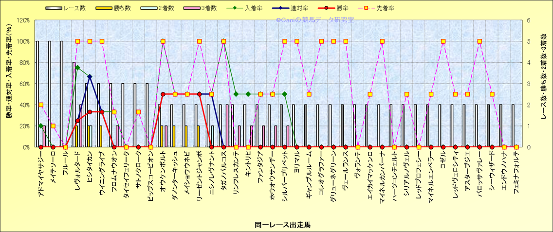 ライバル(相性)解析 同一レースに下記馬が出走した場合の成績とその馬に先着する先着率 |