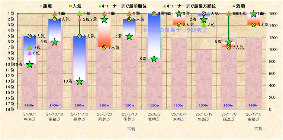 近10走 人気−着順-位置取りの推移 |