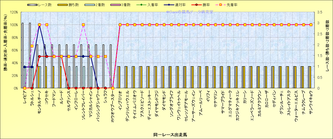 ライバル(相性)解析 同一レースに下記馬が出走した場合の成績とその馬に先着する先着率 |