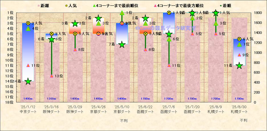 近10走 人気−着順-位置取りの推移 |