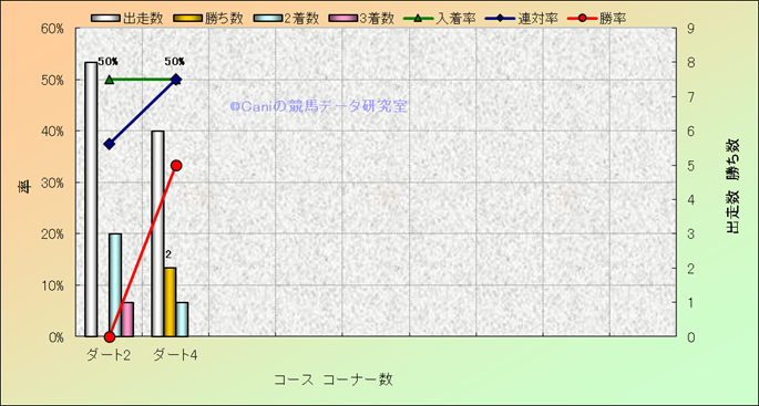 コース、コーナー数別成績(平地) |