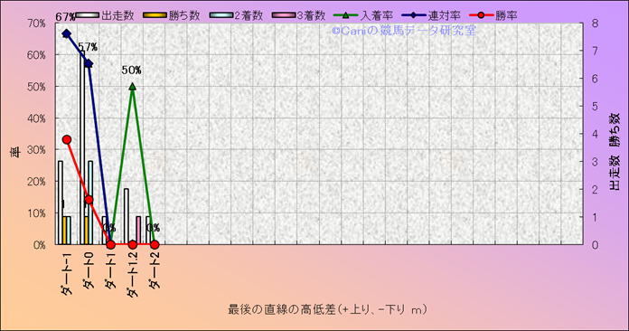 コース、最後の直線の高低差別成績(平地) |