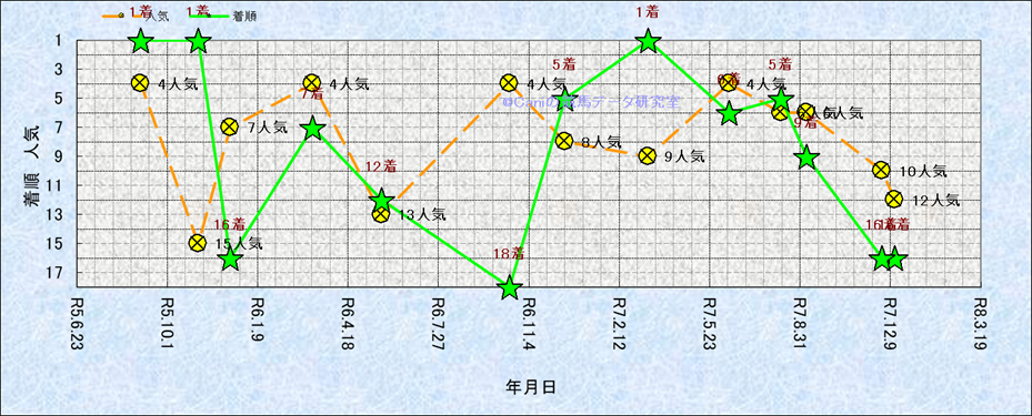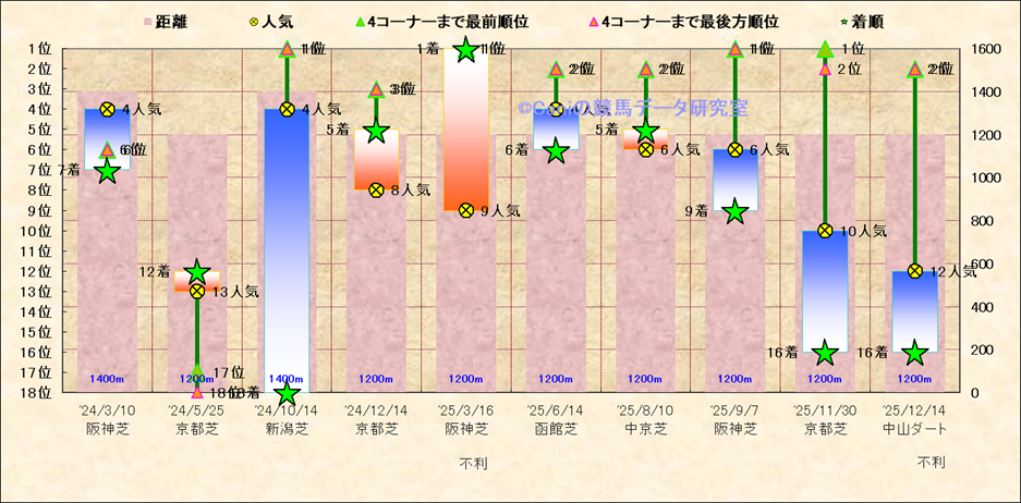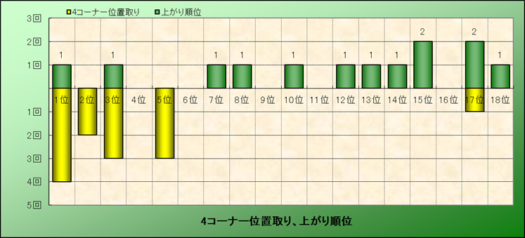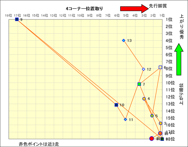 脚質解析 近20レースの4コーナーでの位置取りと上がり順位(頭数補正後) |