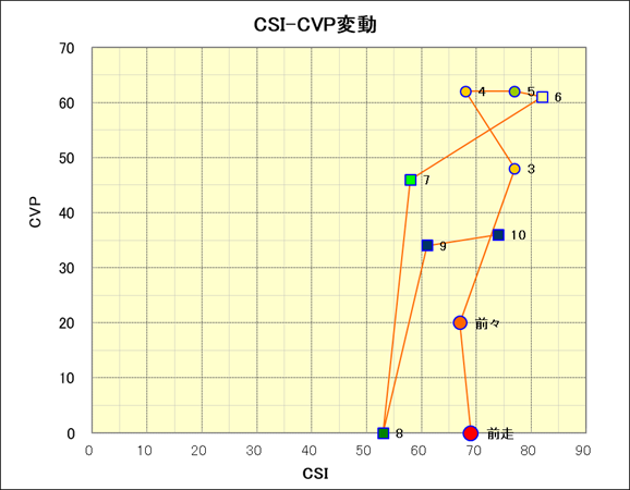 近走における4コーナーでの位置取りと上がり順位(頭数補正後) |