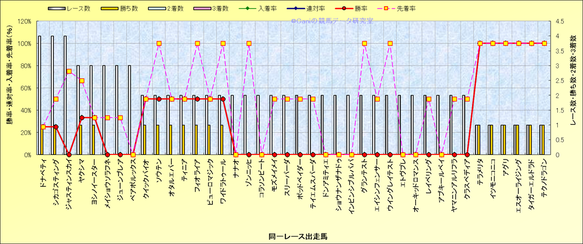 ライバル(相性)解析 同一レースに下記馬が出走した場合の成績とその馬に先着する先着率 |