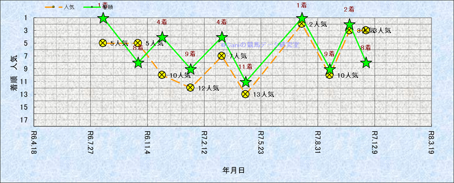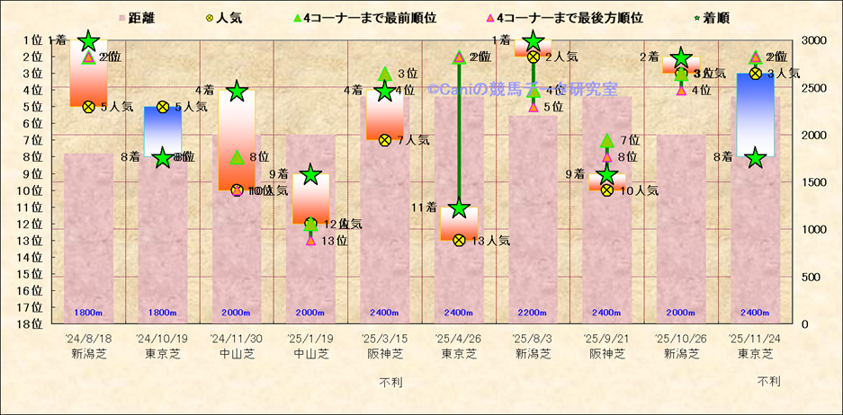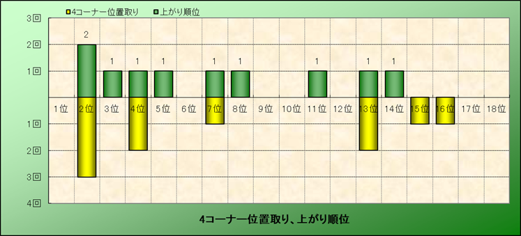 脚質解析 近20レースの4コーナーでの位置取りと上がり順位(頭数補正後) |