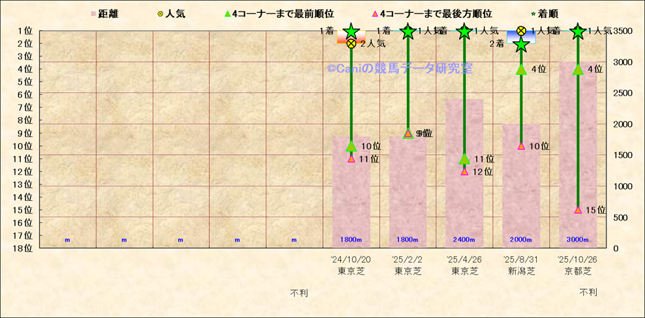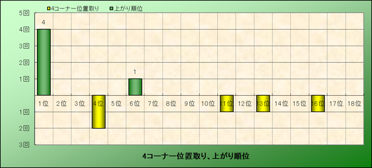 脚質解析 近20レースの4コーナーでの位置取りと上がり順位(頭数補正後) |