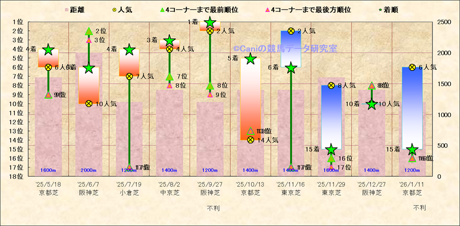 近10走 人気−着順-位置取りの推移 |