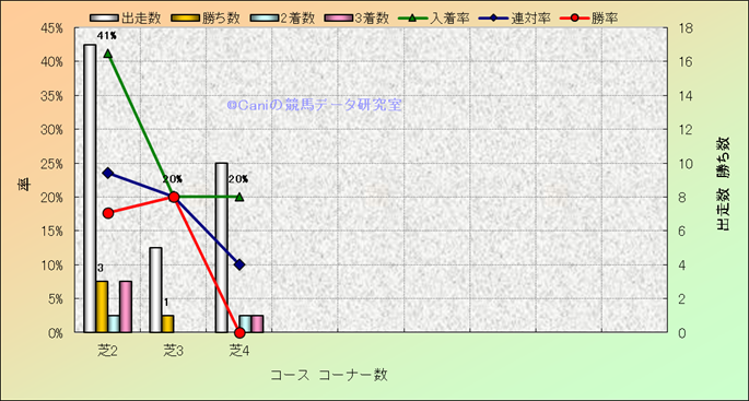 コース、コーナー数別成績(平地) |