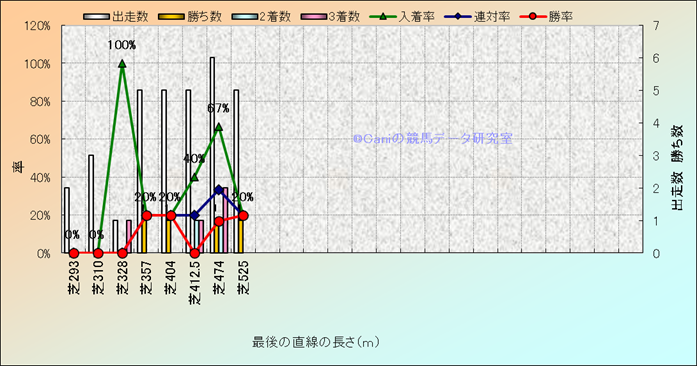 コース、最後の直線の長さ別成績(平地) |