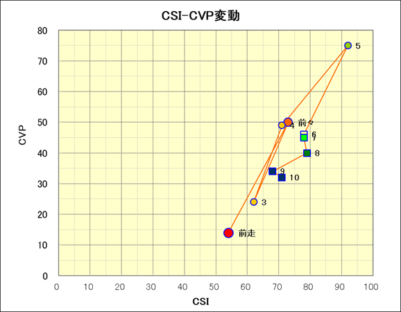 走行距離とCSI値の相関 |