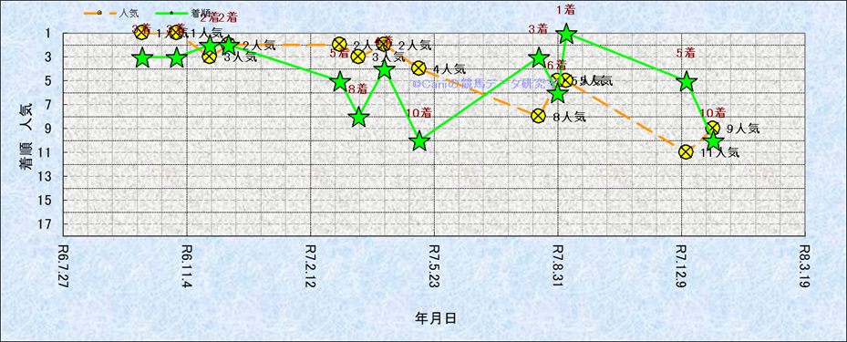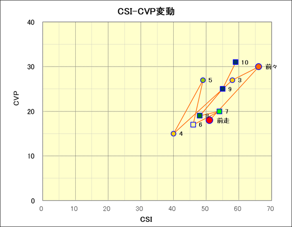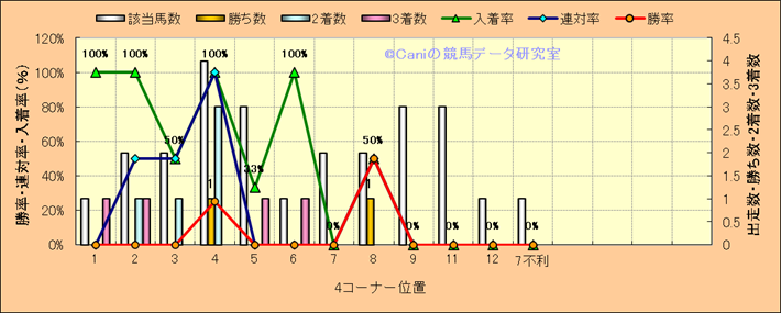 近走における4コーナーでの位置取りと上がり順位(頭数補正後) |