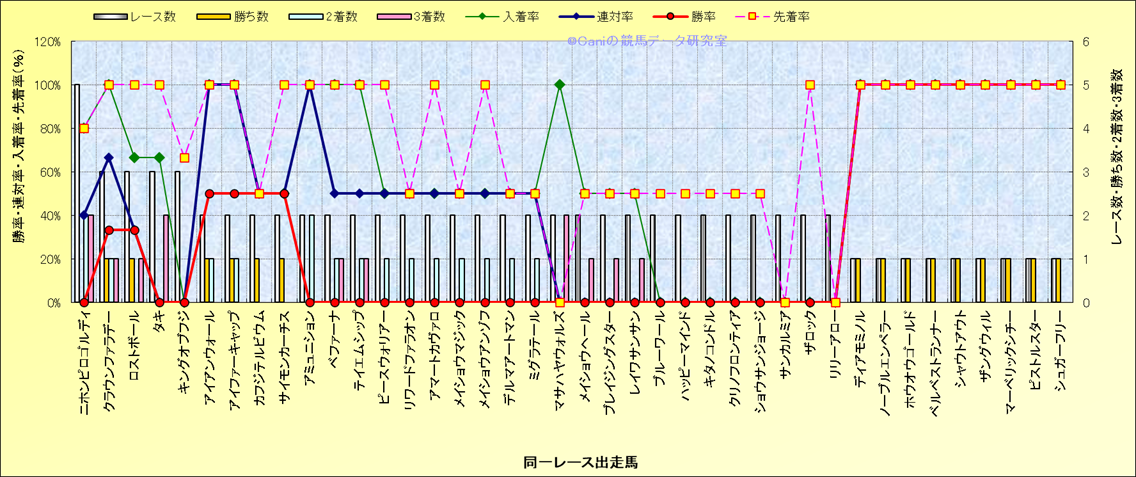 ライバル(相性)解析 同一レースに下記馬が出走した場合の成績とその馬に先着する先着率 |