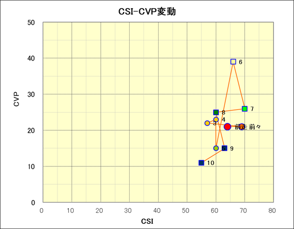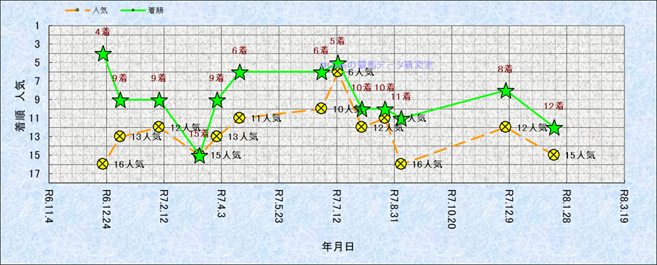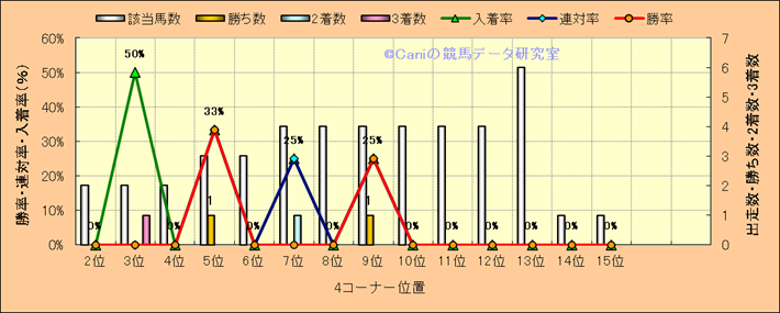 近走における4コーナーでの位置取りと上がり順位(頭数補正後) |