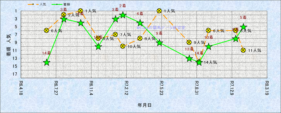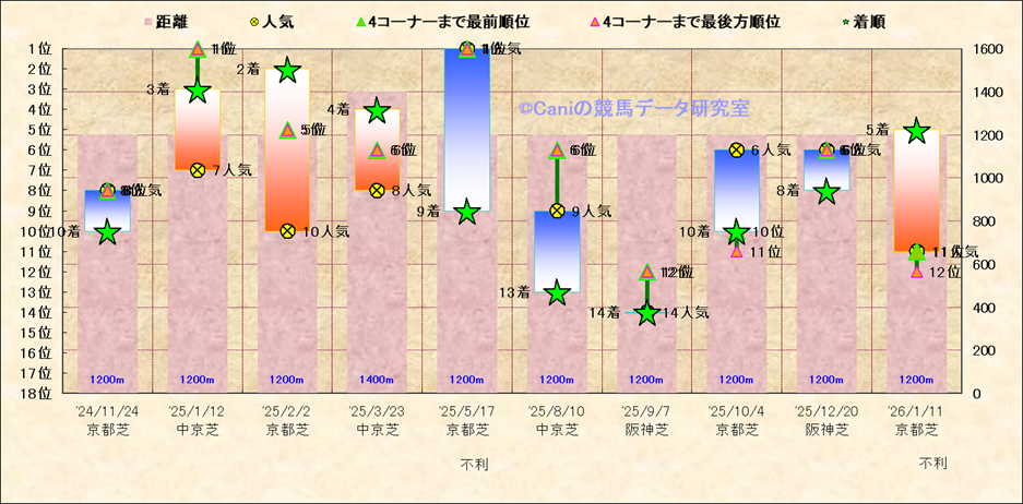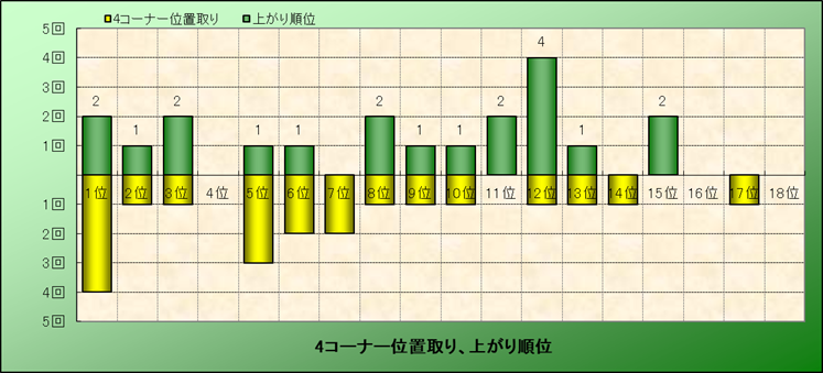脚質解析 近20レースの4コーナーでの位置取りと上がり順位(頭数補正後) |