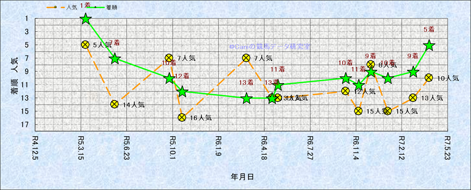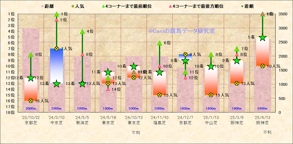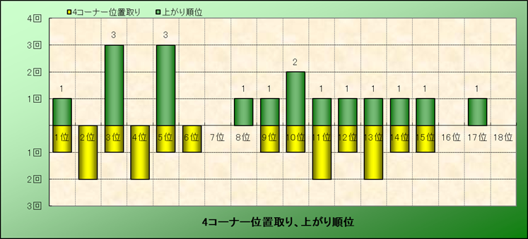 脚質解析 近20レースの4コーナーでの位置取りと上がり順位(頭数補正後) |