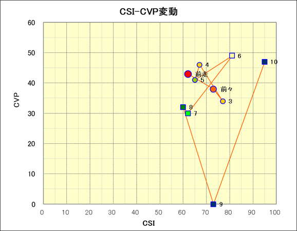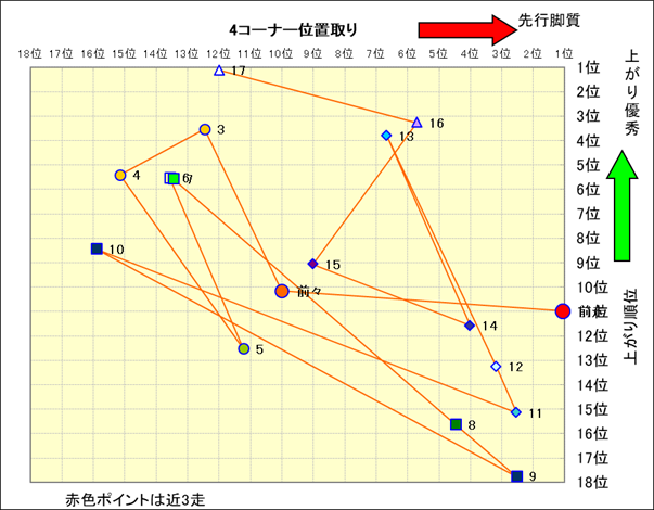 近走における4コーナーでの位置取りと上がり順位(頭数補正後) |