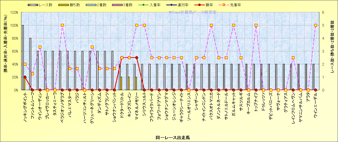 ライバル(相性)解析 同一レースに下記馬が出走した場合の成績とその馬に先着する先着率 |