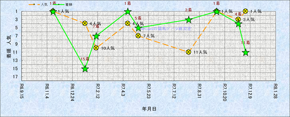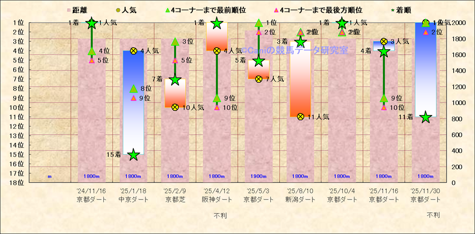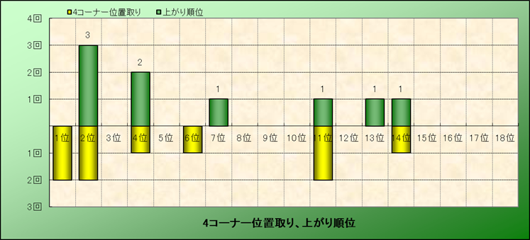 脚質解析 近20レースの4コーナーでの位置取りと上がり順位(頭数補正後) |