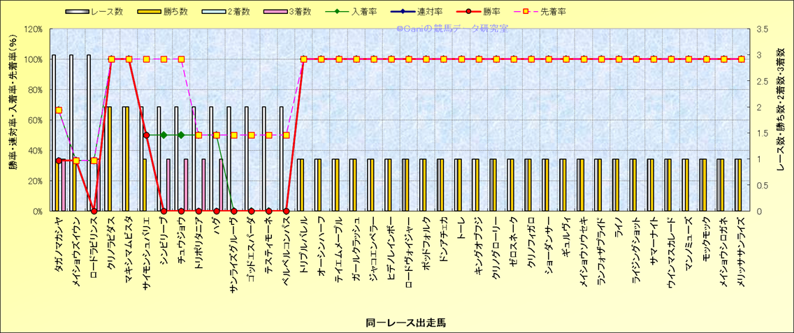 ライバル(相性)解析 同一レースに下記馬が出走した場合の成績とその馬に先着する先着率 |