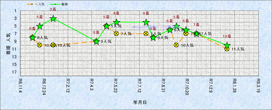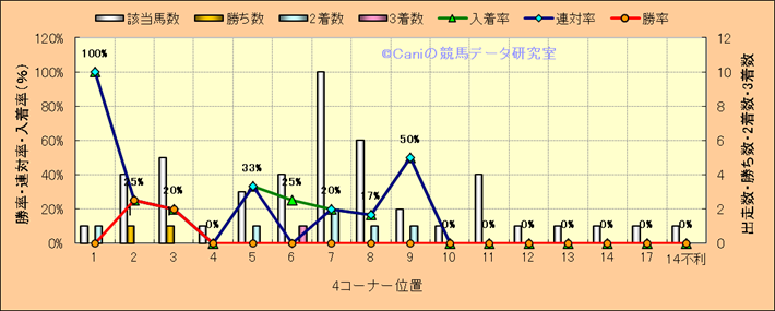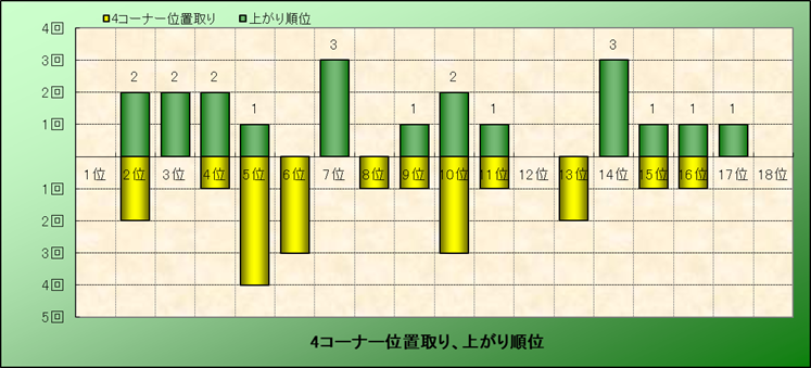 脚質解析 近20レースの4コーナーでの位置取りと上がり順位(頭数補正後) |