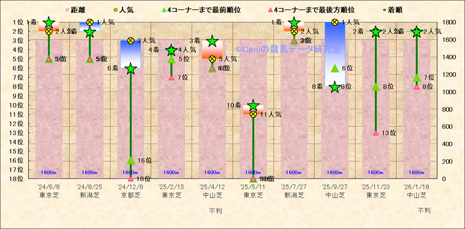 近10走 人気−着順-位置取りの推移 |