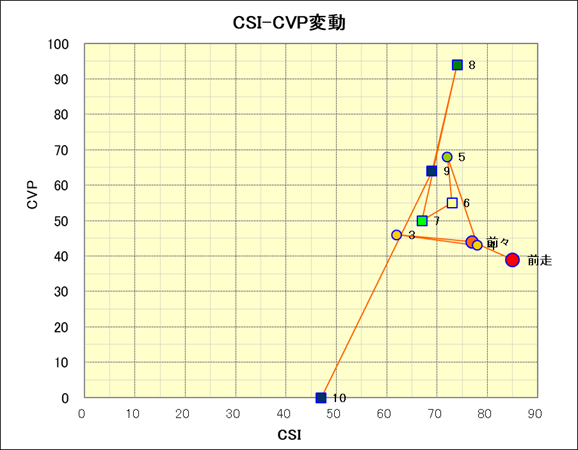 走行距離とCSI値の相関 |