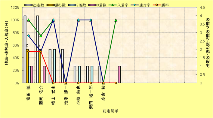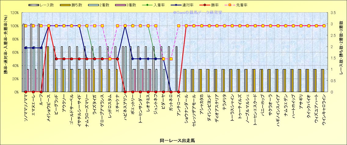 ライバル(相性)解析 同一レースに下記馬が出走した場合の成績とその馬に先着する先着率 |