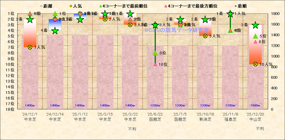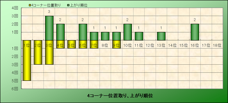 脚質解析 近20レースの4コーナーでの位置取りと上がり順位(頭数補正後) |