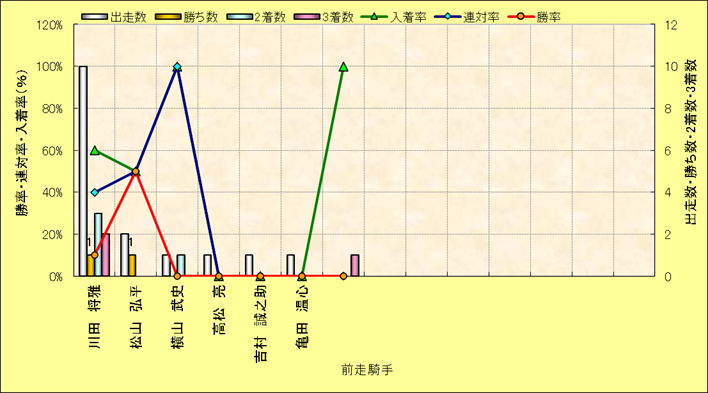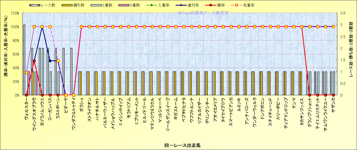 ライバル(相性)解析 同一レースに下記馬が出走した場合の成績とその馬に先着する先着率 |