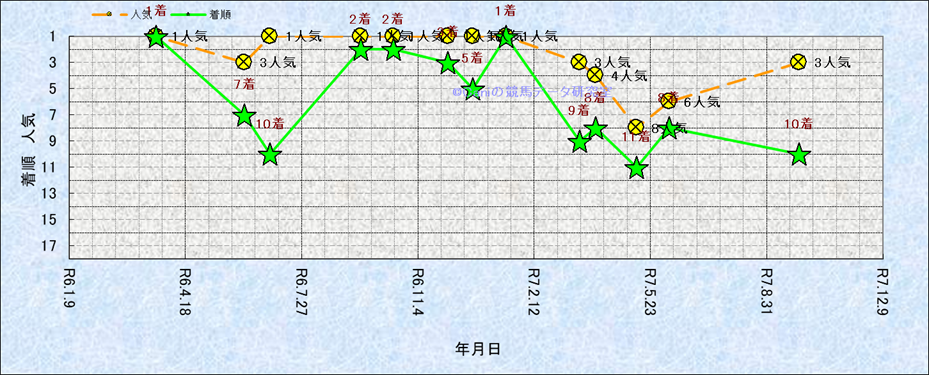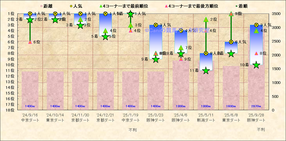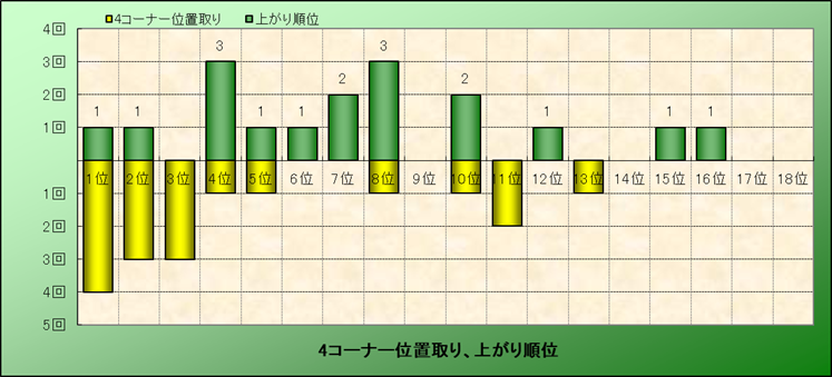 脚質解析 近20レースの4コーナーでの位置取りと上がり順位(頭数補正後) |