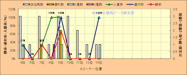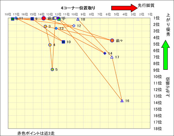 近走における4コーナーでの位置取りと上がり順位(頭数補正後) |
