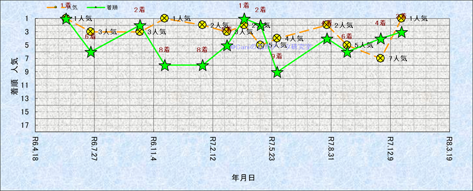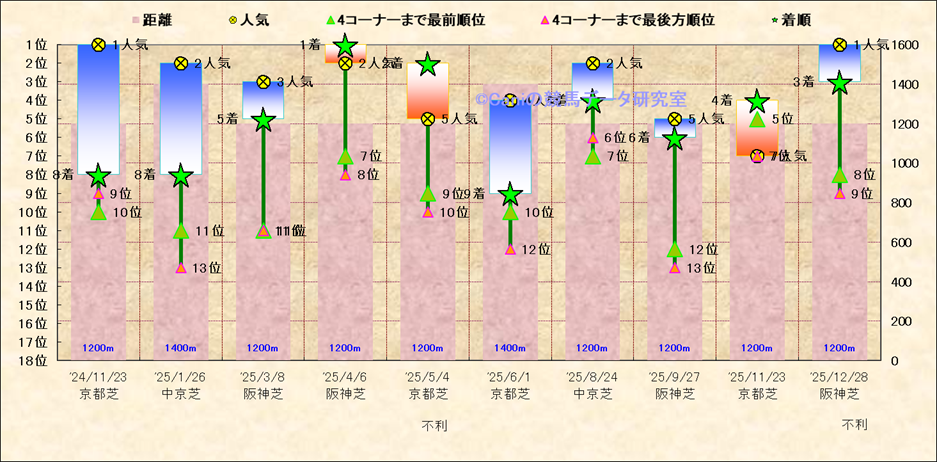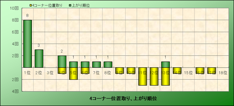 脚質解析 近20レースの4コーナーでの位置取りと上がり順位(頭数補正後) |