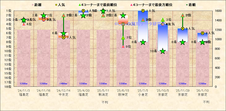 近10走 人気−着順-位置取りの推移 |