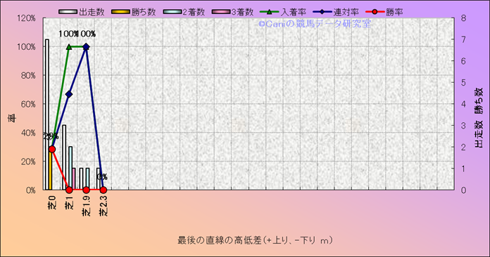 コース、最後の直線の高低差別成績(平地) |