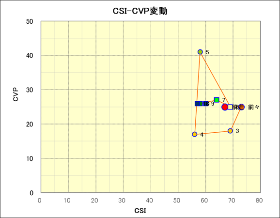 走行距離とCSI値の相関 |