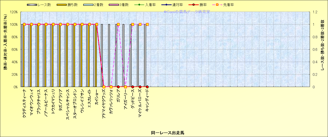 ライバル(相性)解析 同一レースに下記馬が出走した場合の成績とその馬に先着する先着率 |