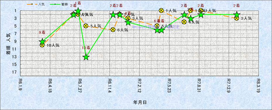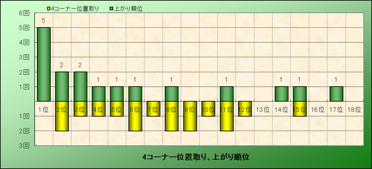 脚質解析 近20レースの4コーナーでの位置取りと上がり順位(頭数補正後) |