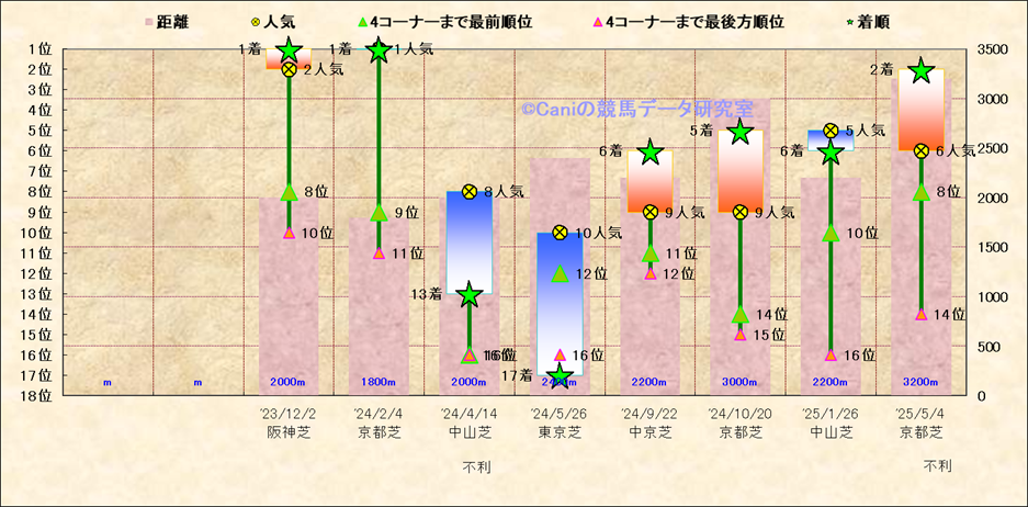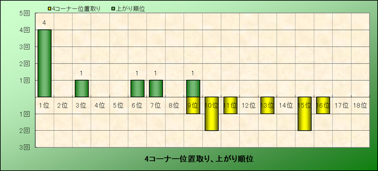 脚質解析 近20レースの4コーナーでの位置取りと上がり順位(頭数補正後) |