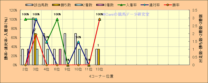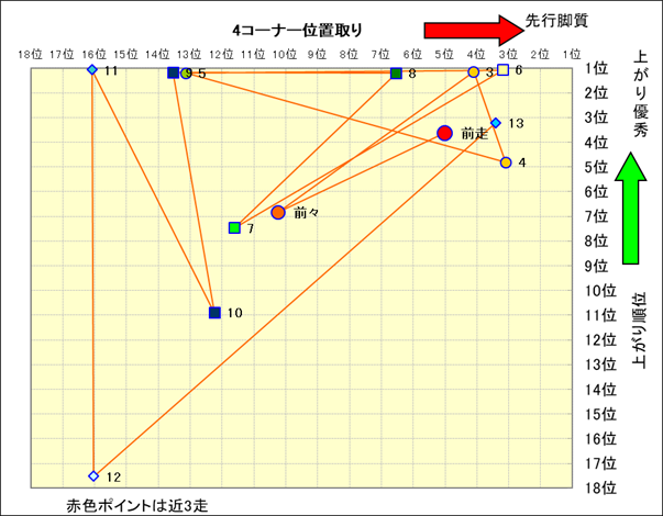 近走における4コーナーでの位置取りと上がり順位(頭数補正後) |